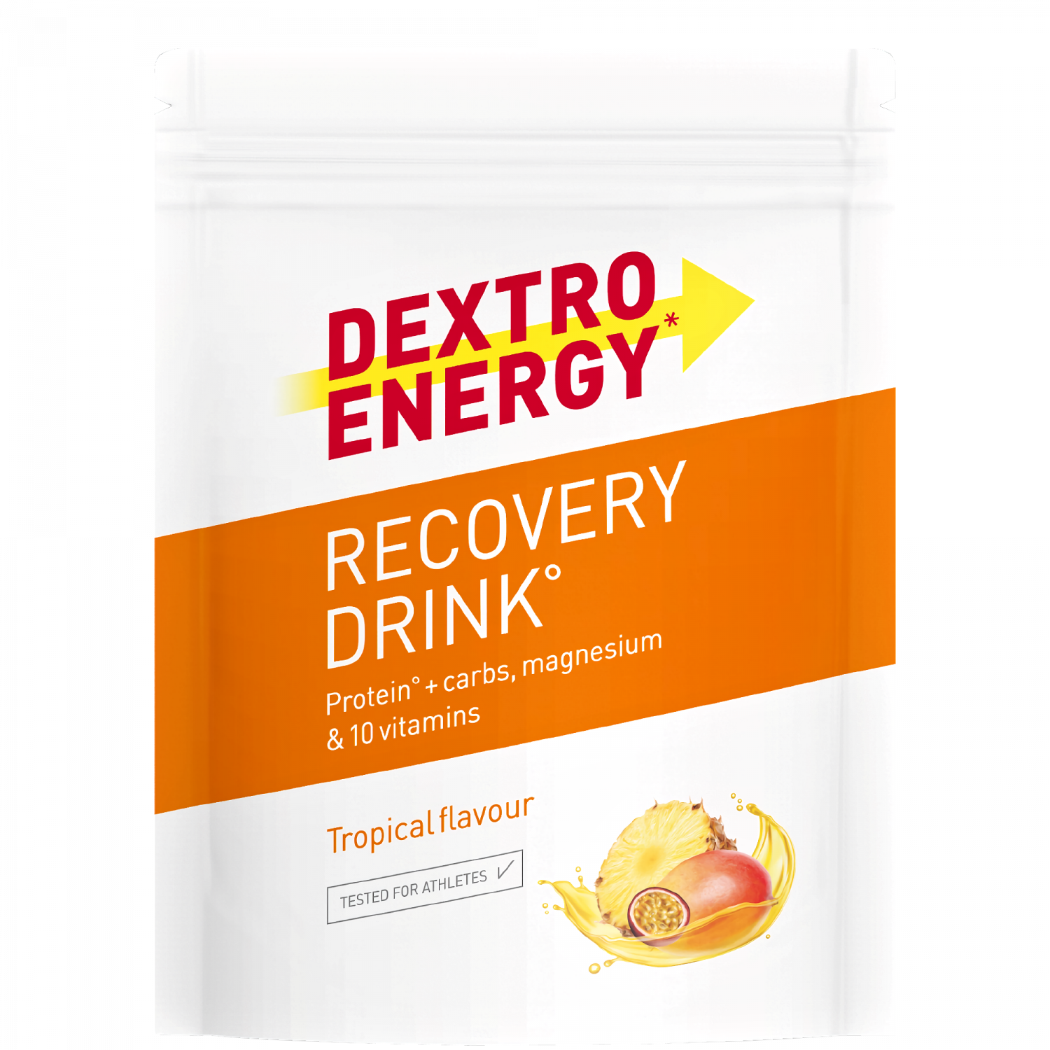 Getränkepulver mit Kohlenhydraten, Eiweiß, Magnesium und 10 Vitaminen. Tropischer Frucht-Mix-Geschmack.