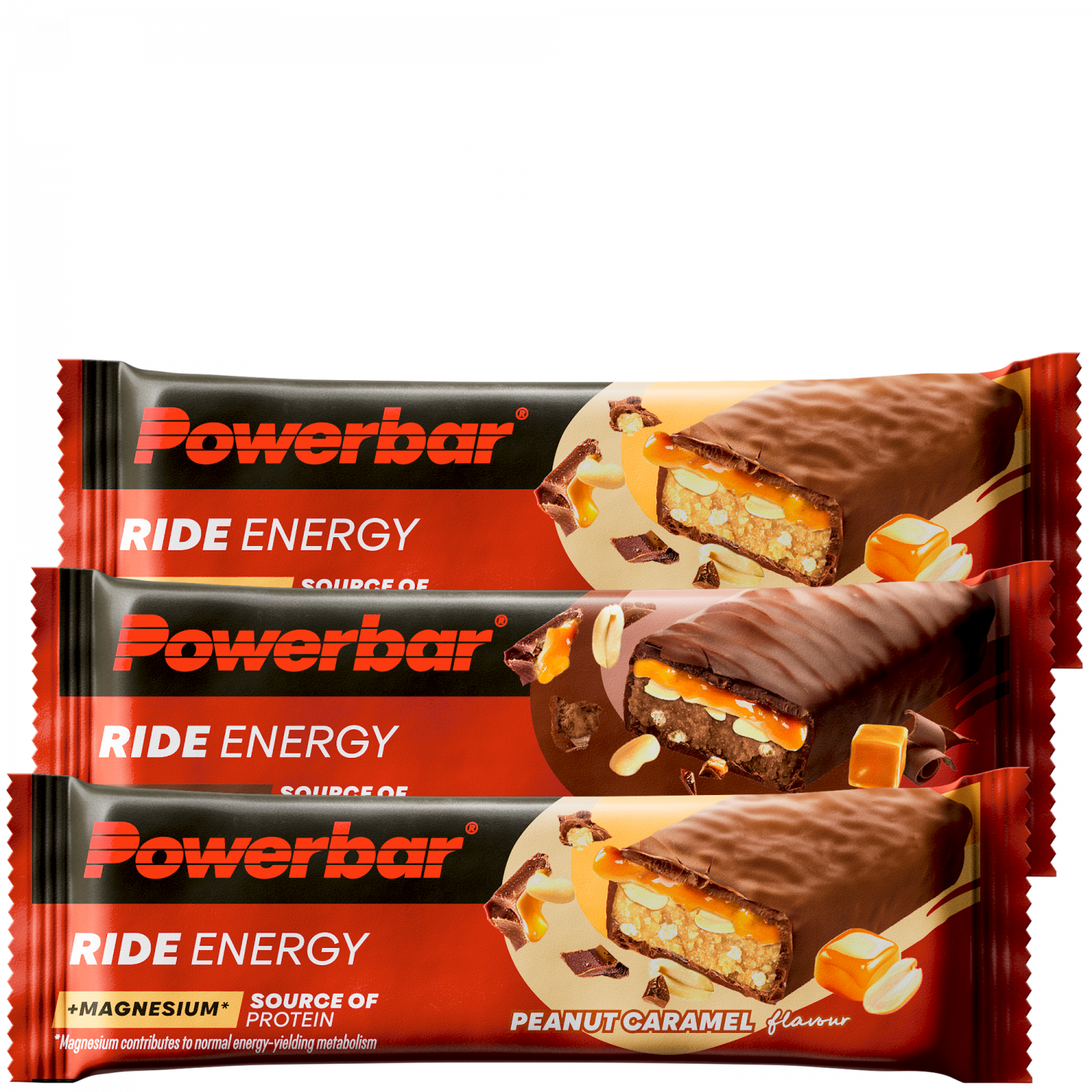 Powerbar setzt beim Ride Energy Riegel auf einen Energiemix aus z.B. Erdnüsse, Sojacrispies, Kakao und Karamellfüllung. Mit ca. 25 g Kohlenhydrate pro Riegel (ca. 45 g pro 100 g) ist die Energiedichte durchschnittlich hoch. Der Mix sorgt für eine anhaltende Energiezufuhr.